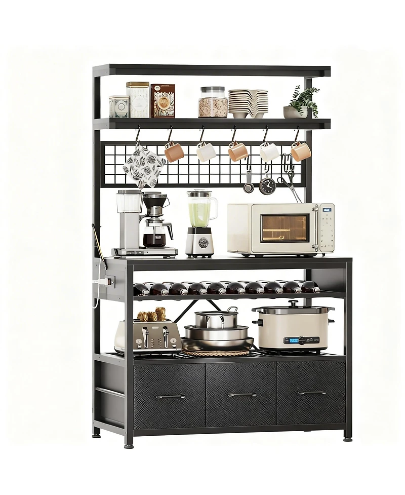 Yigii Large shelve with Storage Drawers Microwave Stand Power Outlet Led Lights
