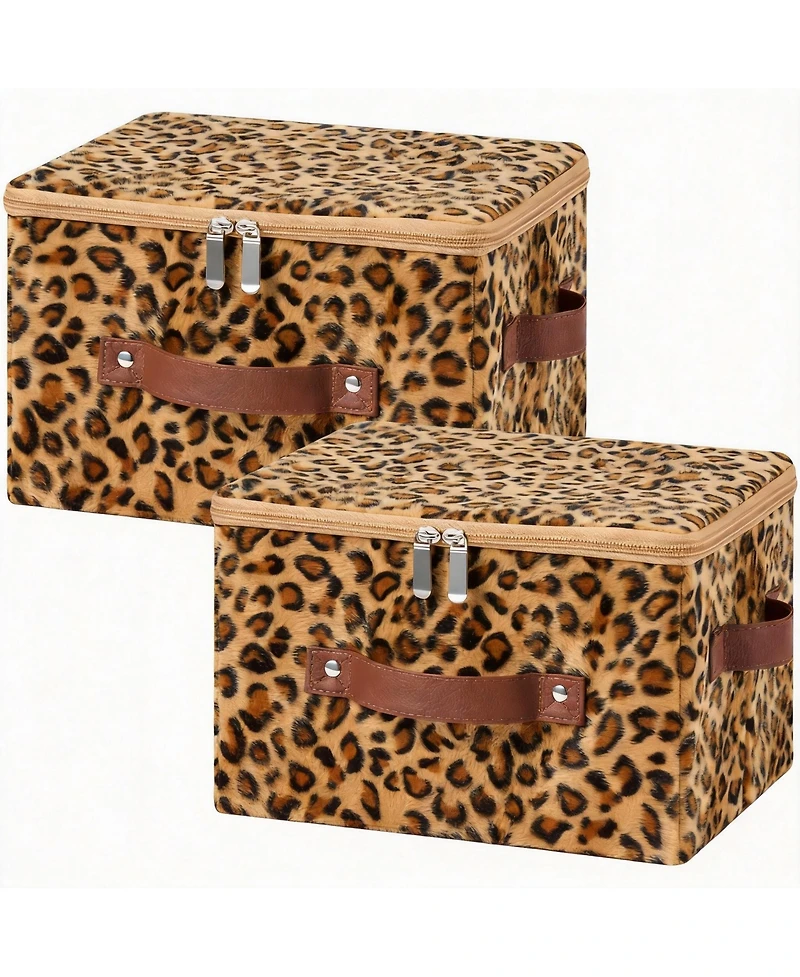 Yigii Leopard Print Storage Bins with Zipper Lid, Pu Leather Handles, Pp Plastic Board, Foldable, Washable, small-2