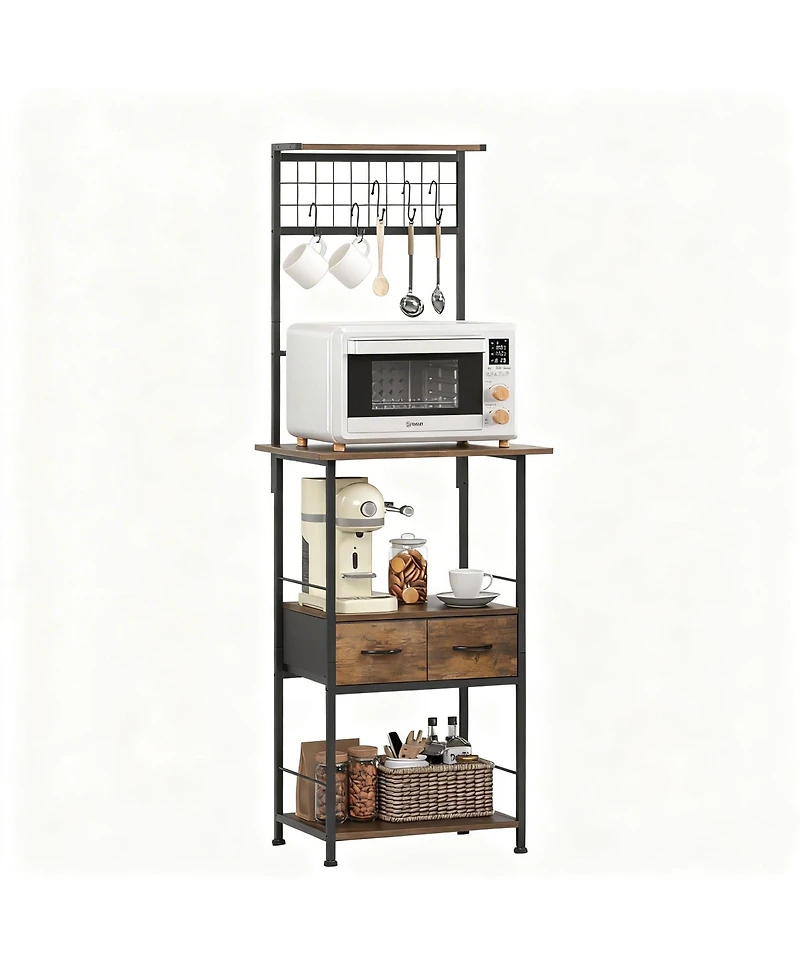 Yigii Space-Saving Slim Coffee Bar with 4 Shelves, 2 Drawers, 5 Hooks