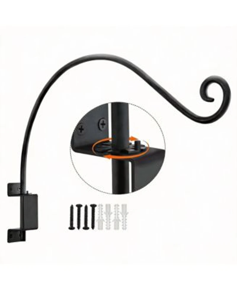 Outdoor swivel plant hook for bird feeders, pots, baskets, wind chimes. Steel build, 8-angle swivel, holds 30 lb. Kit: bracket, base, 2 screws, 2 anchors. Fits wood, tree, deck, wall. 3-year support. Weight: 0.11 pounds. Length: 11.81 inch. Width: 7.09 inch. Height: 1.18 inch.