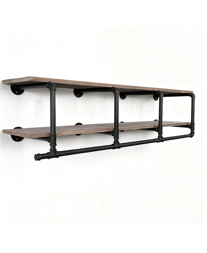 Industrial matte-black iron wall rack for clothes, hats, scarves, towels or plants saves space by keeping garments wrinkle-free, mounts in minutes with included screws for concrete or tile, holds 132 lb. Weight: 0.03 pounds. Length: 14.57 inch. Width: 59.05 inch. Height: 12.09 inch.