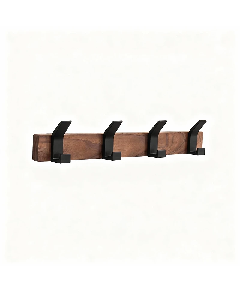 Premium walnut and aluminum wall coat rack, rust-free and strong enough for heavy coats, bags or keys without bending. Sleek wood-black finish upgrades any room while hiding screws. Hooks tilt 45° so items stay put and curved edges protect clothes and skin. Install in 15 min with included hardware 15.7 in rail holds 45 lb. Two-year support. weight: 0.93 pounds. Length: 15.94 inch. Width: 3.50 inch. Height: 2.68 inch.
