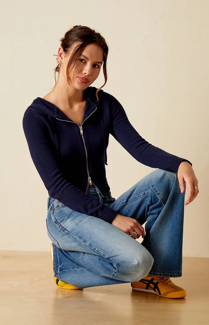 The Skylar Zip Up Knit Hoodie from Your Favorite is the perfect mix of cozy and cool for your everyday look. Made from a knit fabric, it features long sleeves, a drawstring hood, a full zipper front closure, ribbed trimming, and a slim fit that layers effortlessly.