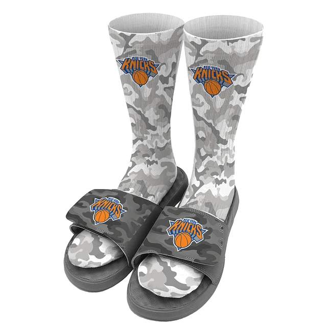 Youth ISlide Gray New York Knicks Camo Sock & Slide Bundle