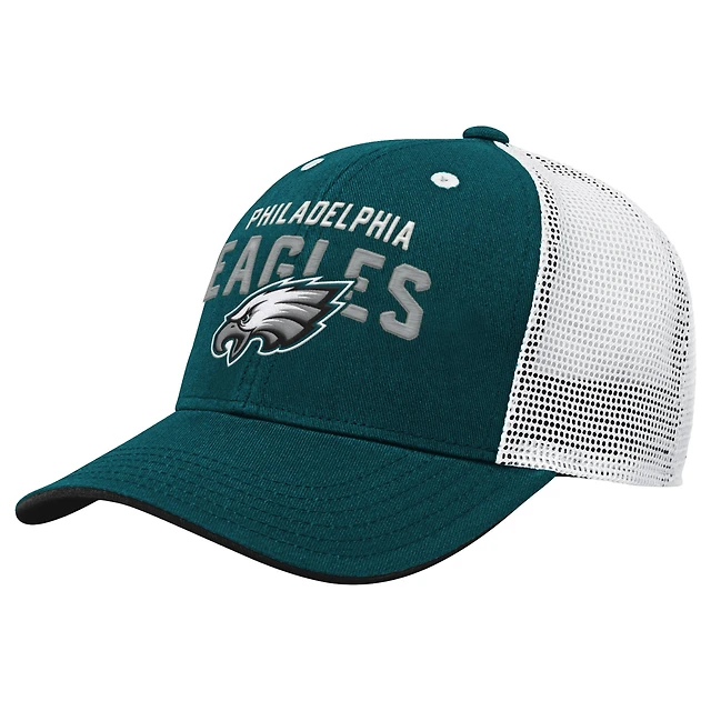 Outerstuff Big Boys and Girls White/Midnight Green Philadelphia Eagles Essentials Trucker Adjustable Hat