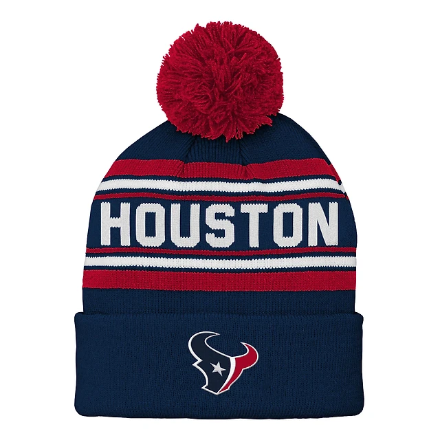 Youth Navy Houston Texans Jacquard Jacquard Cuffed Knit Hat with Pom