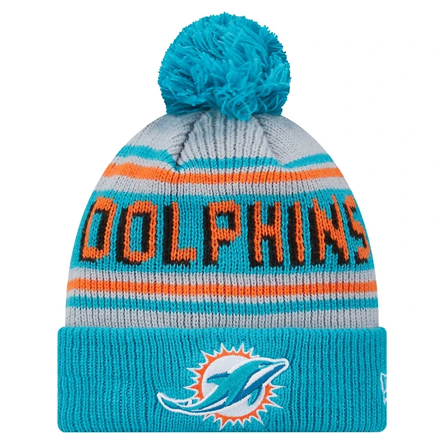 Men's New Era Aqua Miami Dolphins Classic Cuffed Knit Hat with Pom