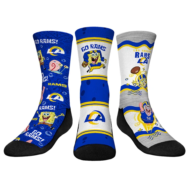 Youth Rock Em Socks Los Angeles Rams NFL x Nickelodeon Spongebob Squarepants 3-Pack Crew Socks Set