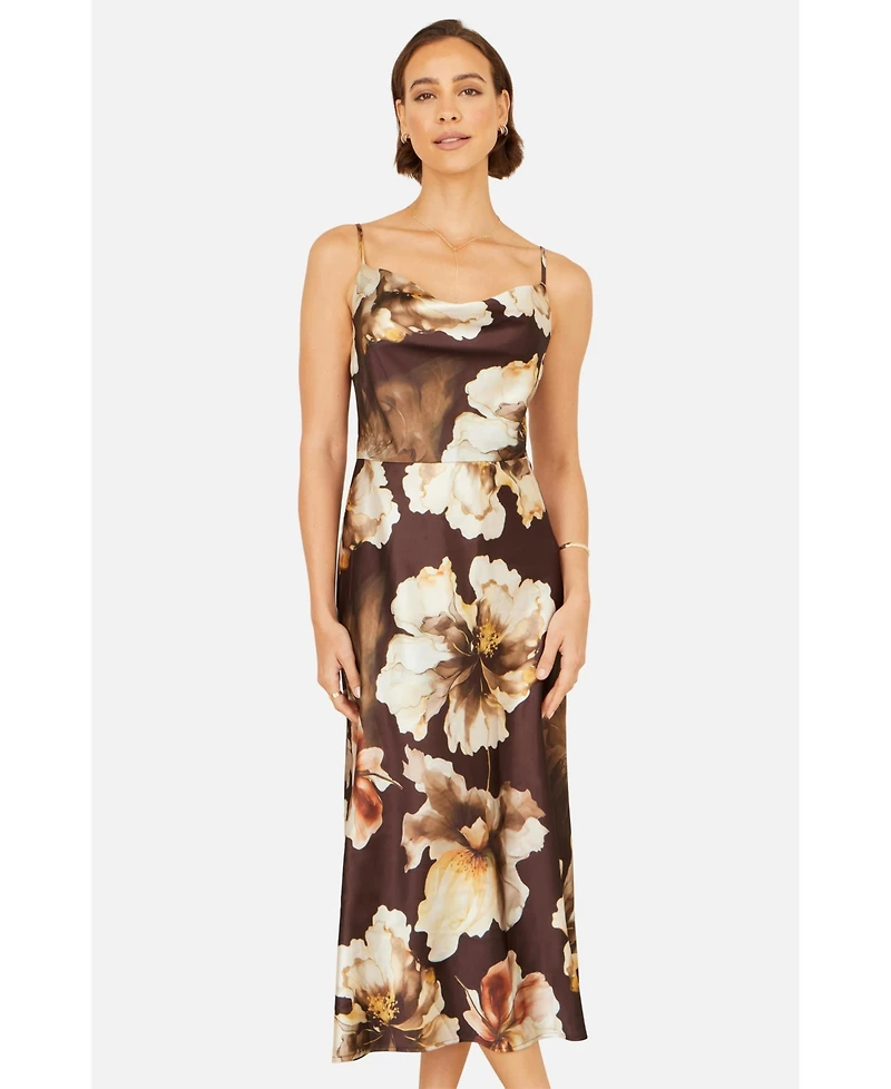 Yumi Women's Cowl Neck Satin Floral Dress