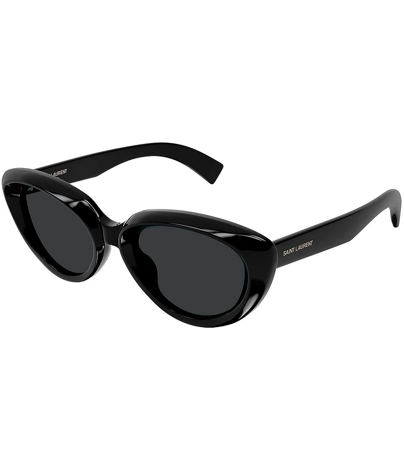 From Saint Laurent, these sunglasses feature: Recycled acetate frame Cat eye shape Solid lens Rx able Non polarized Approx. 53mm lens - 20mm bridge - 145mm temple Imported.