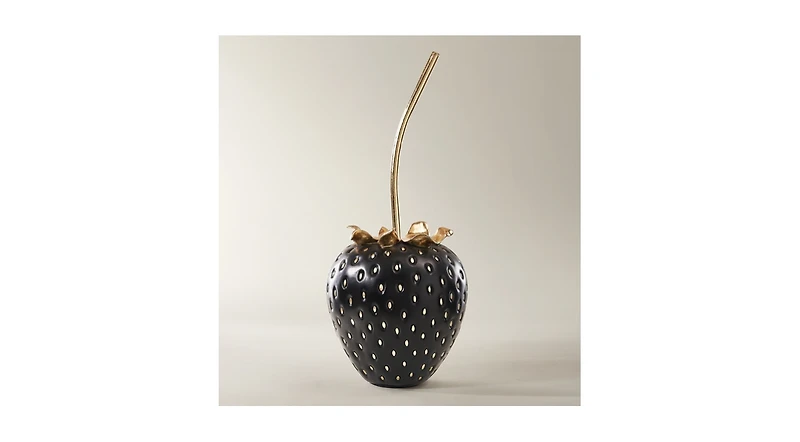 Bold, sculptural, and irresistibly chic, our Grand Strawberry reimagines everyday fruit as a striking high-fashion statement piece. Expertly cast from high-quality resin for durable form and structure, it features a sleek, luxe matte black finish that exudes modern sophistication. Every detail is hand-enhanced with radiant gold accents, adding luminous contrast and artisanal refinement to its iconic silhouette. Oversized and eye-catching, this decorative piece blends playful whimsy with elevated elegance, turning any corner into a curated focal point. Whether styled on an entryway console, displayed atop a stack of coffee-table books, placed on a vanity, or used as a standalone centerpiece, it elevates modern glam, eclectic, and maximalist interiors alike. More than decor, it is a bold expression of personality that merges artistic design with luxurious detailing for enduring style. Zg Exclusive.