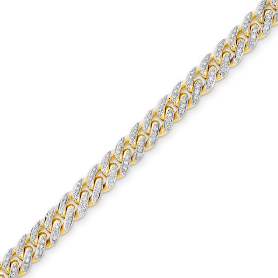 Men's Cuban Curb Chain Bracelet 2 ct tw Diamonds 10K Yellow Gold 8.5"