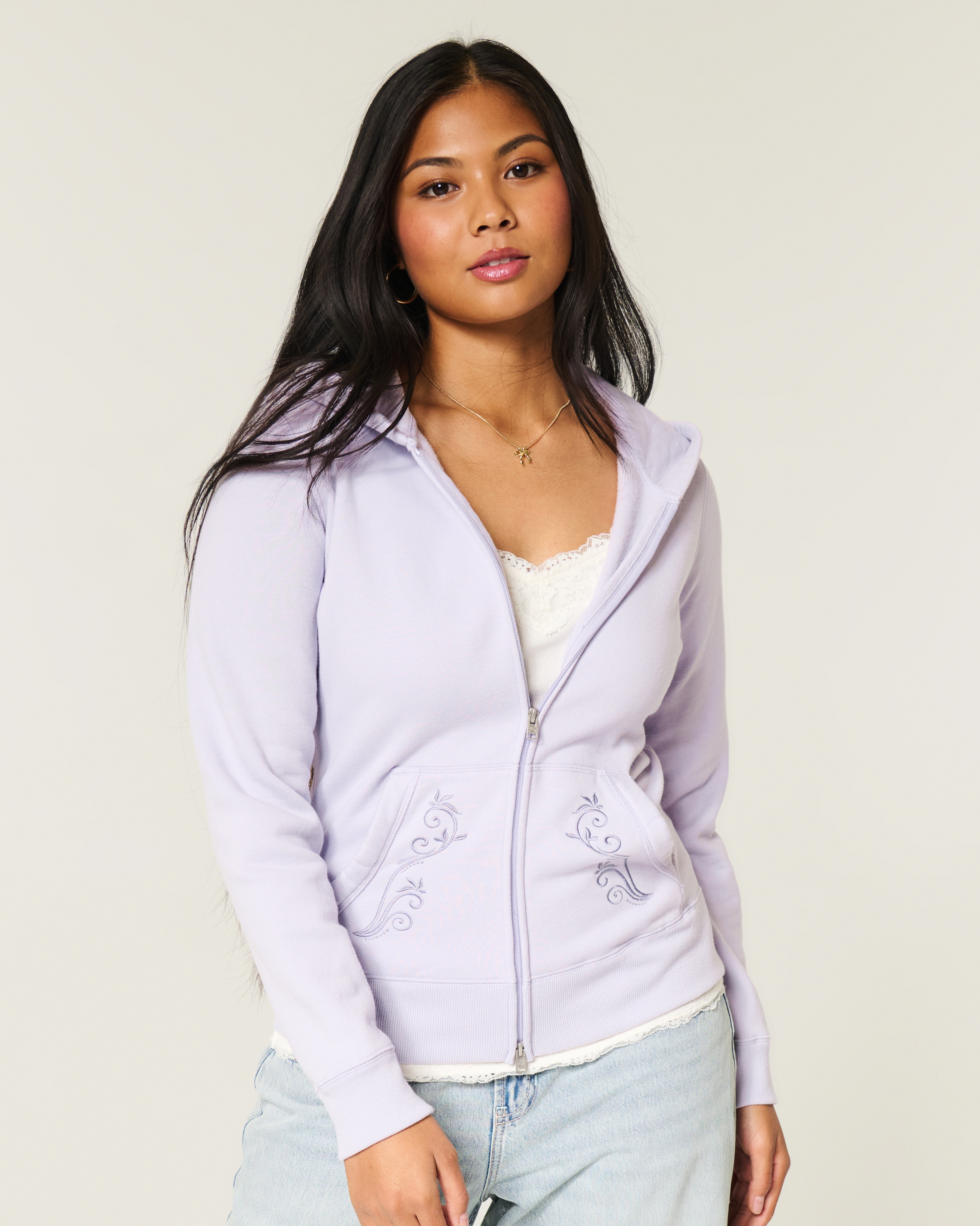 Hollister Feel Good Embroidered Zip-Up Hoodie