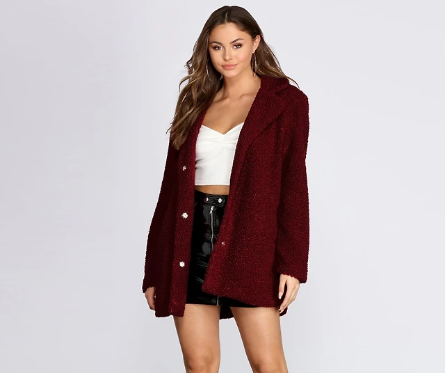 Azalea Wang Adria Faux Fur Oversize Shawl Collared Trench Coat