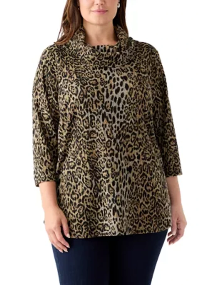 Plus Chenille Ribbed Cowl Neck Sweater