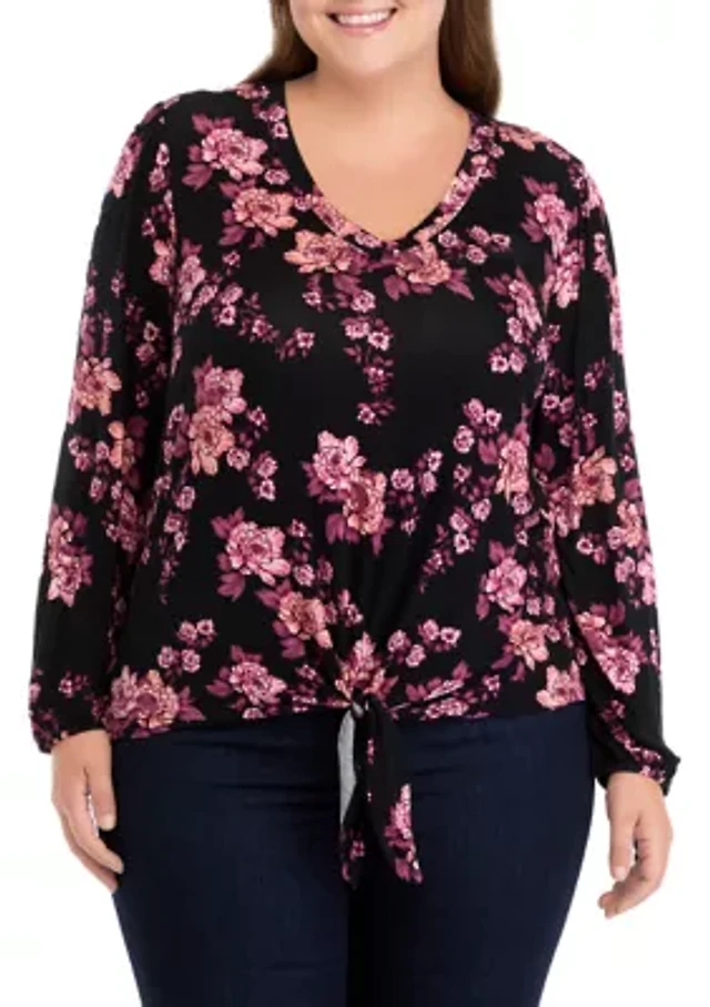 Plus Long Sleeve Sequin Top with Rib Cuff and Neckline