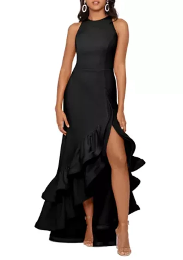 Women's Halter Neck Ruffle Tier Scuba Crepe Gown