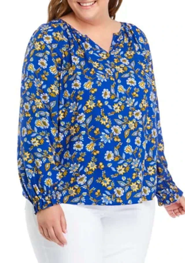 Plus Crew Neck 3/4 Sleeve Printed Top