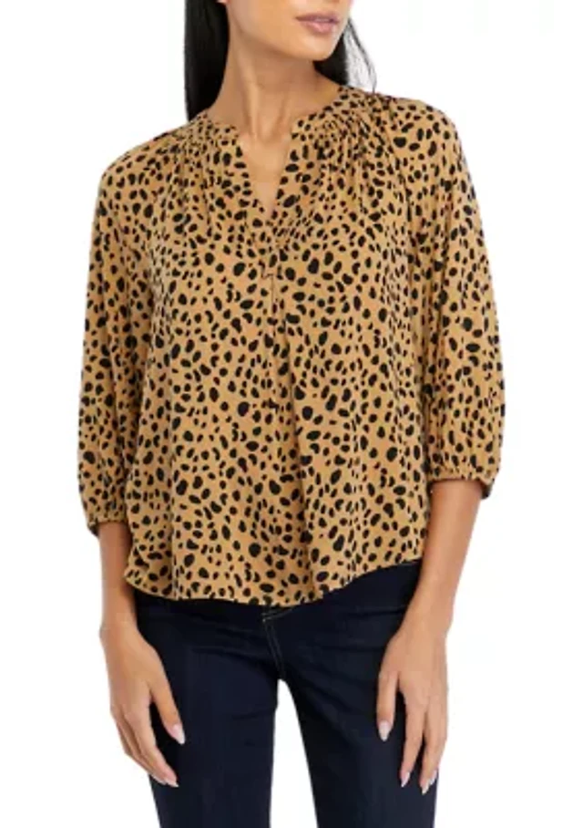Plus 3/4 Blouson Sleeve Printed Popover Blouse