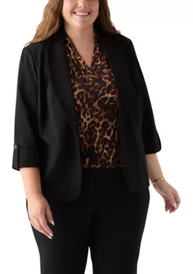 Plus High Neck Button Front Blouse with Long Sleeve