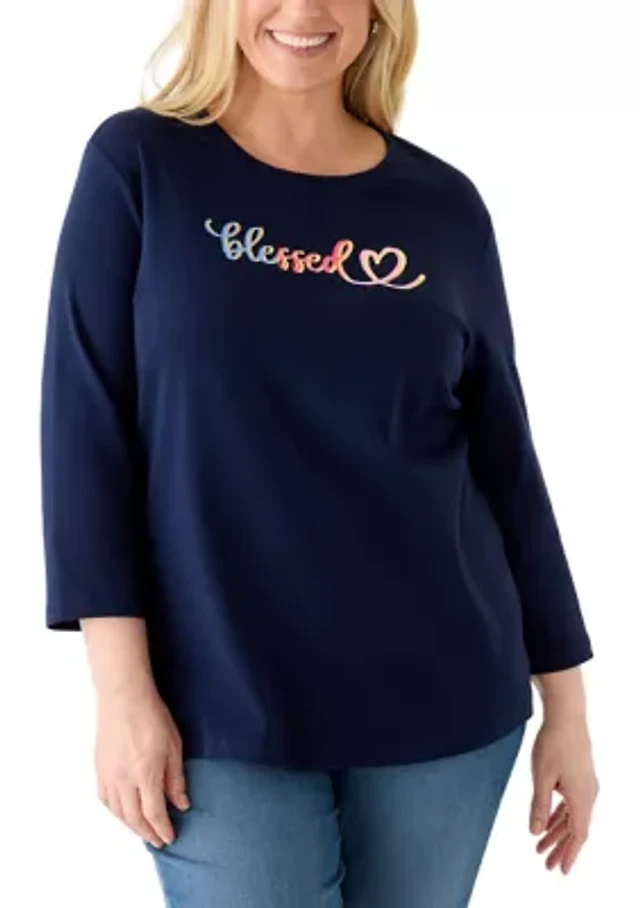 Plus Short Sleeve Ruffle Printed T-Shirt