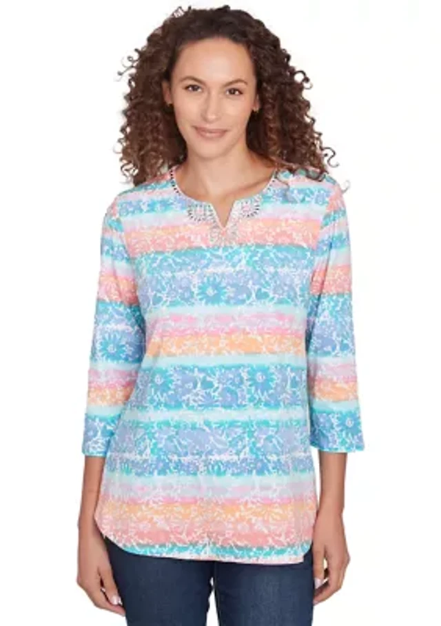 Petite Vintage Floral Tie Front Henley T-Shirt