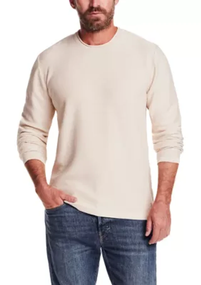 Big & Tall Long Sleeve Yarn and Herringbone Mix Crew Neck Pullover