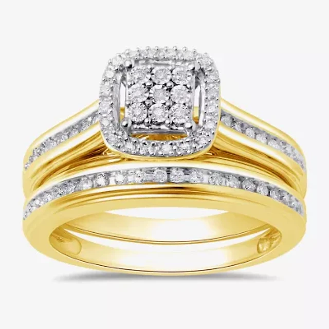 Surrounded by Love Womens 1/5 CT.T.W. Natural Diamond Sterling Silver or 14K Gold Over Cushion Side Stone Halo Bridal Set