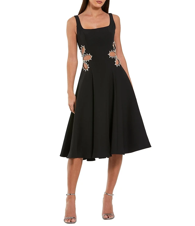 Eliza J Strapless Rhinestone Bow Sweetheart Neck Midi Dress