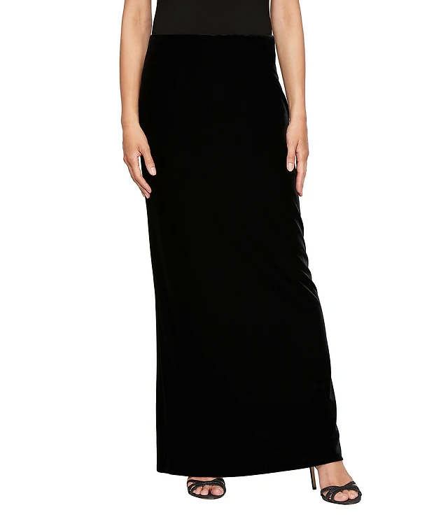 Alex Evenings Stretch Velvet Fishtail Pull-On A-Line Maxi Skirt