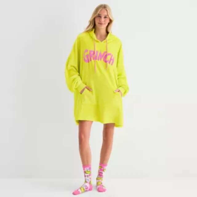 Disney Mjc Womens Juniors Short Sleeve Hooded Grinch Nightgown