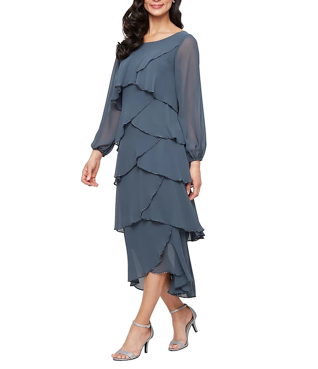 Ignite Evenings Sequin Chiffon Cascade Sleeve Midi Dress