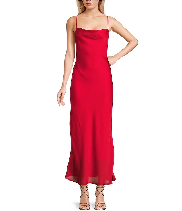 Gianni Bini Haven Satin V-Neck Sleeveless Maxi Slip Dress