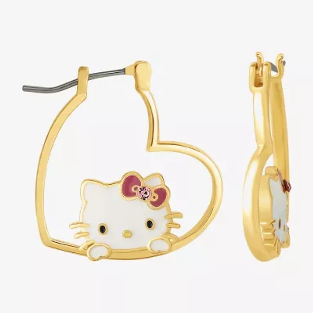 Womens Pink Crystal 18K Gold Over Brass 26.1mm Heart Hello Kitty Hoop Earrings