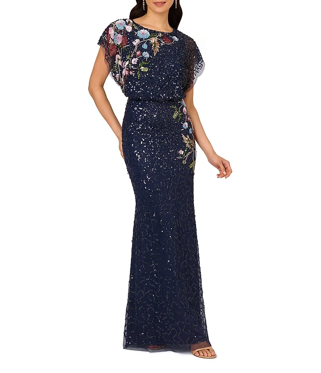 Alex Evenings Bubble Hem Short Sleeve Sequin Print Gown
