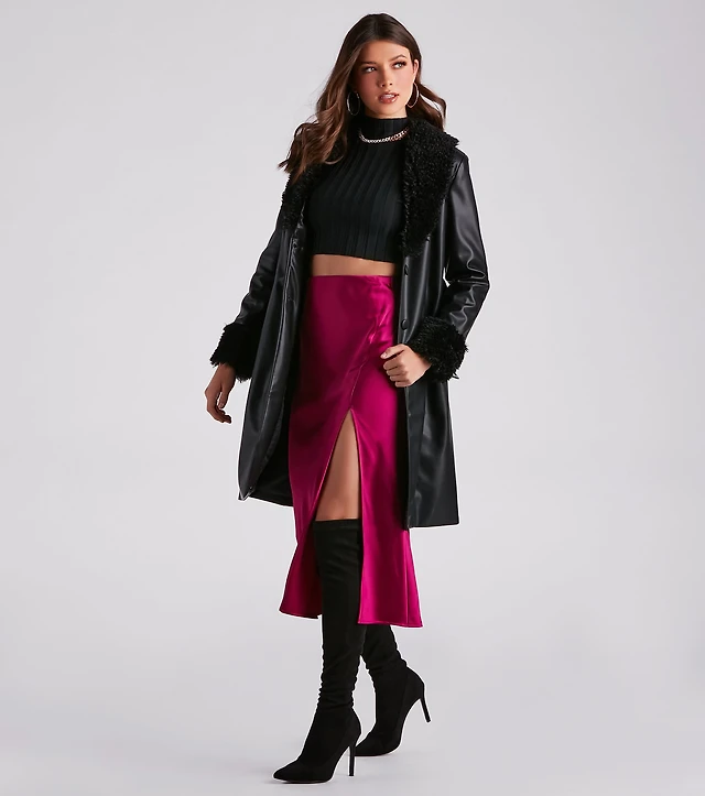 Azalea Wang Kaya Faux Fur Oversize Shawl Collar Belted Snap Front Trench Coat
