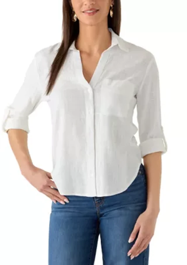 Ann Taylor Mixed Media V-Neck Shell Top Women's