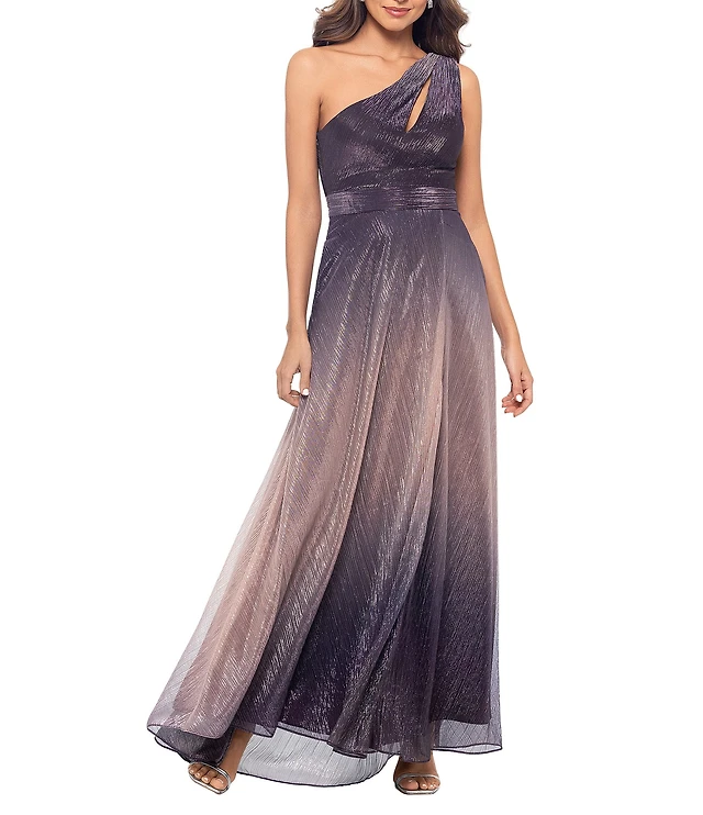 Betsy & Adam One Shoulder Ombre Gown With Keyhole