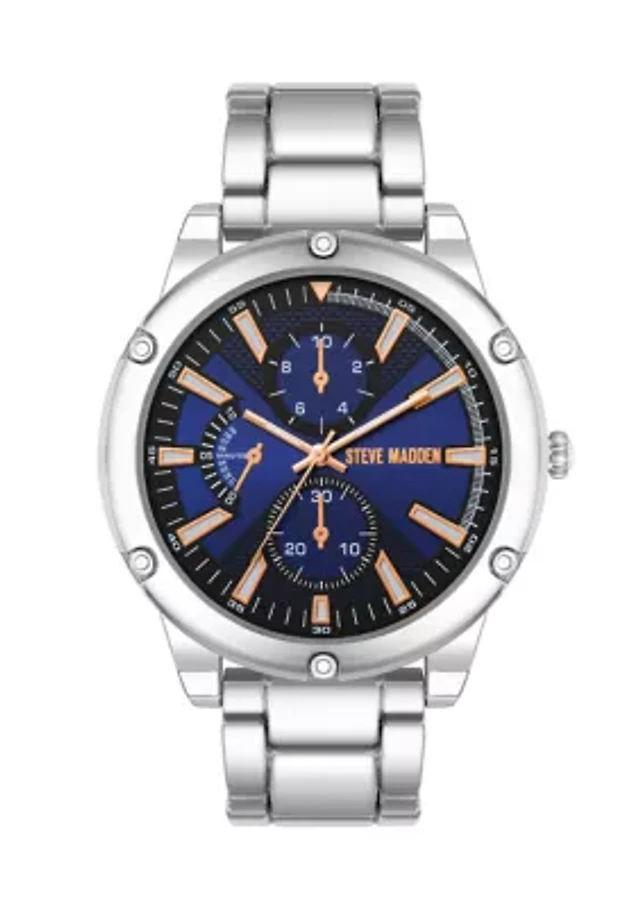 Modern Navy Dial and Silver-Tone Alloy Metal Watch