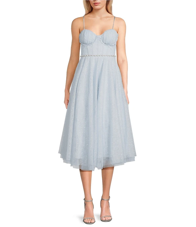 B. Darlin V-Neck Sequin Embroidered Illusion Corseted Front Slit Dress