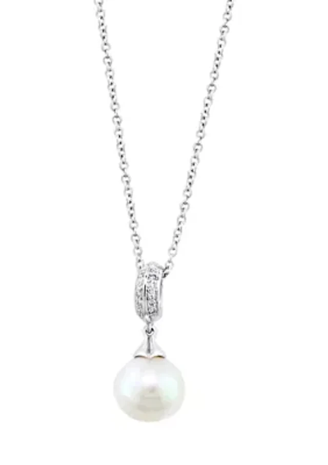 Diamond and Freshwater Pearl Pendant Necklace in Sterling Silver
