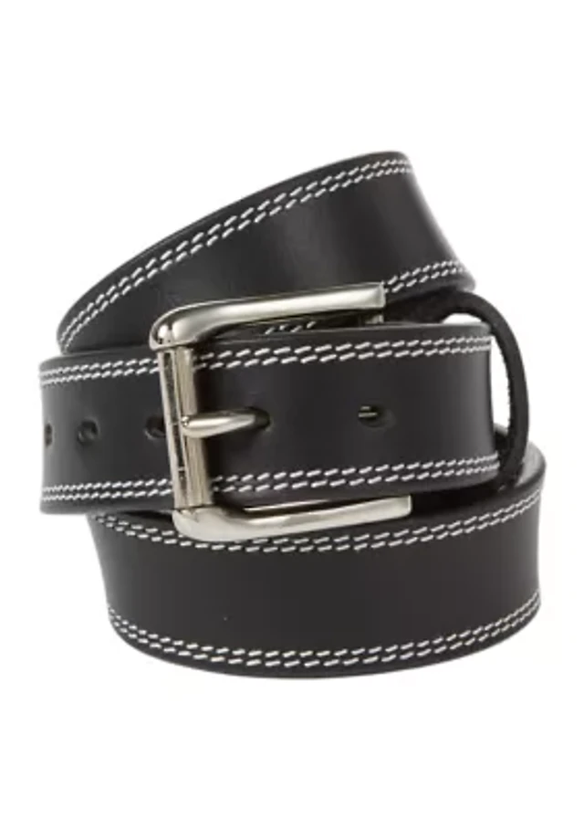 Men's 35 Millimeter Center Heat Crease Black Leather Belt