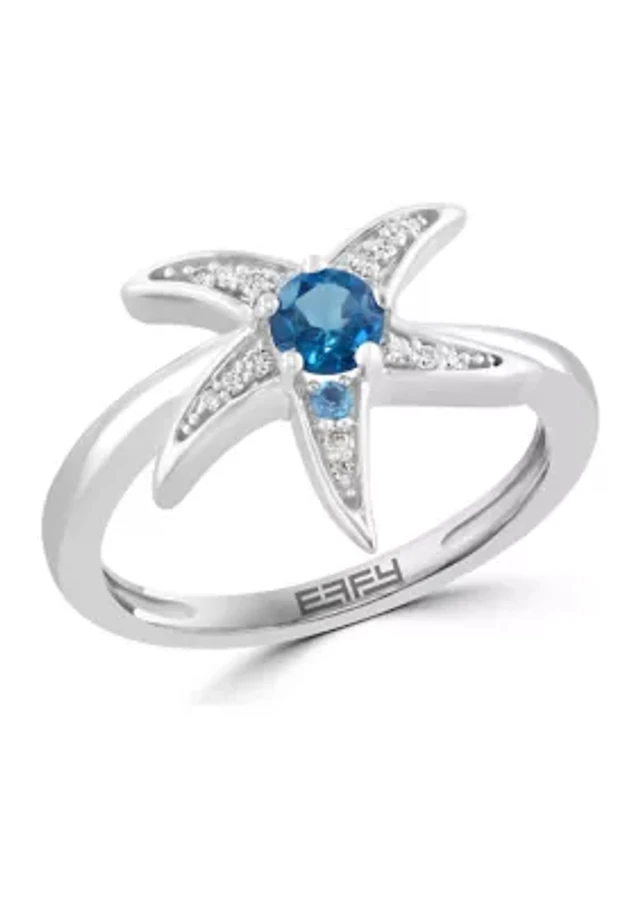 Blue Topaz and White Sapphire Cable Ring in Sterling Silver