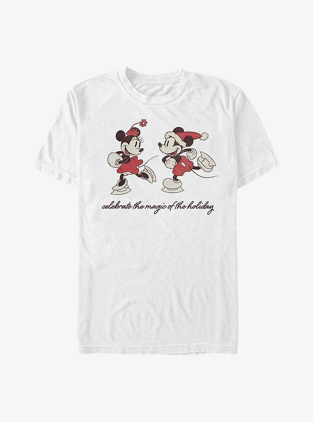 Disney Mickey Mouse & Minnie Vintage Holiday Skaters T-Shirt