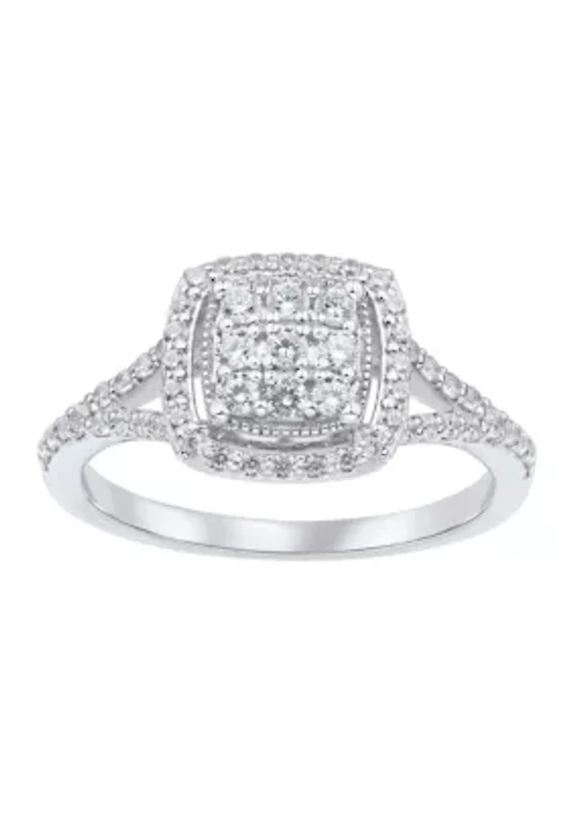 Sterling Silver Pavé Cubic Zirconia Square Pendant Necklace