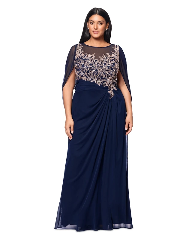 Xscape Plus Off-the-Shoulder Glitter Gown