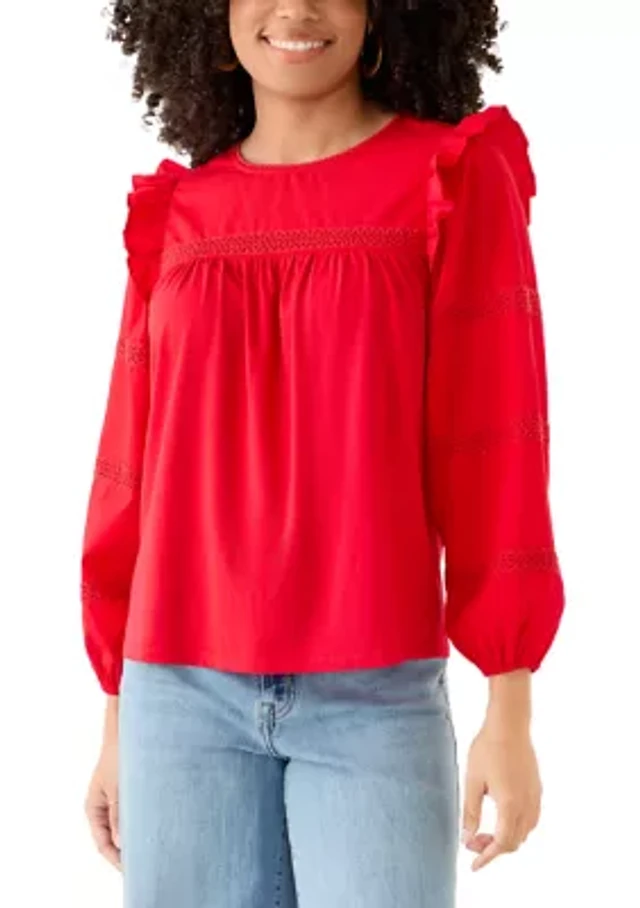 Pieced Floral Eyelet Top