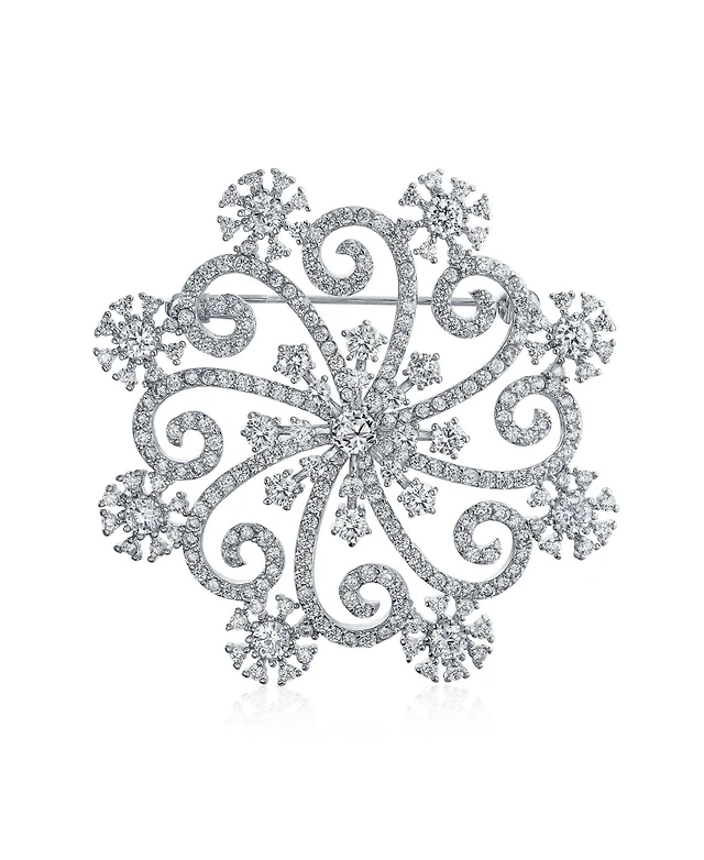 Bling Jewelry Sparkling Rose Flower Brooch Pin with Crystals Silver Tone Rhodium Plated