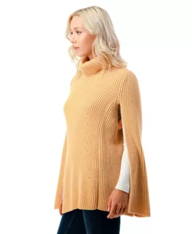 Investments Petite Size Removeable Faux Fur Collar Two-Way Zip Front Stripe Sweater Poncho