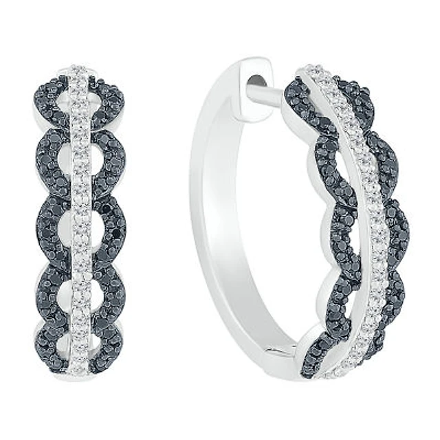 Womens 1/2 CT. T.W. Natural Black Diamond Sterling Silver 13mm Hoop Earrings